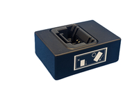 専用の”有線接続ドック”を用いて充電、および、PCとのUSB通信を行うことができます。